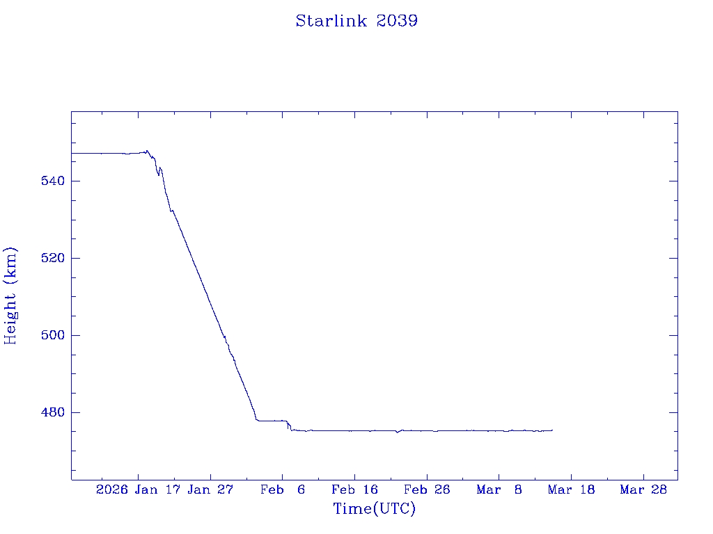 | Starlink 2039 | S47655 | O | 2021 Feb 16 | * | - |  |  |  |
