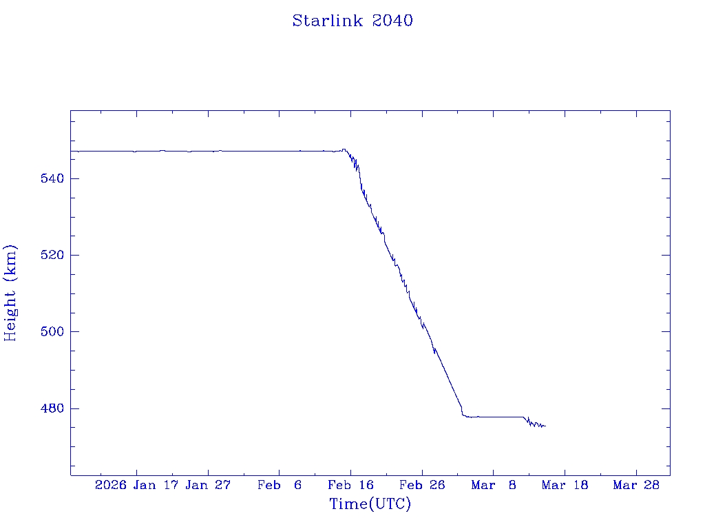 | Starlink 2040 | S47656 | O | 2021 Feb 16 | * | - |  |  |  |