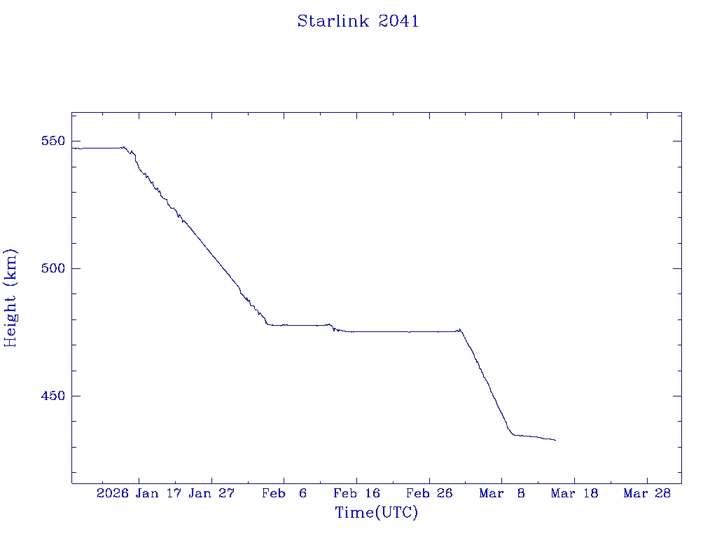 | Starlink 2041 | S47657 | R | 2021 Feb 16 | * | - |  |  |  |