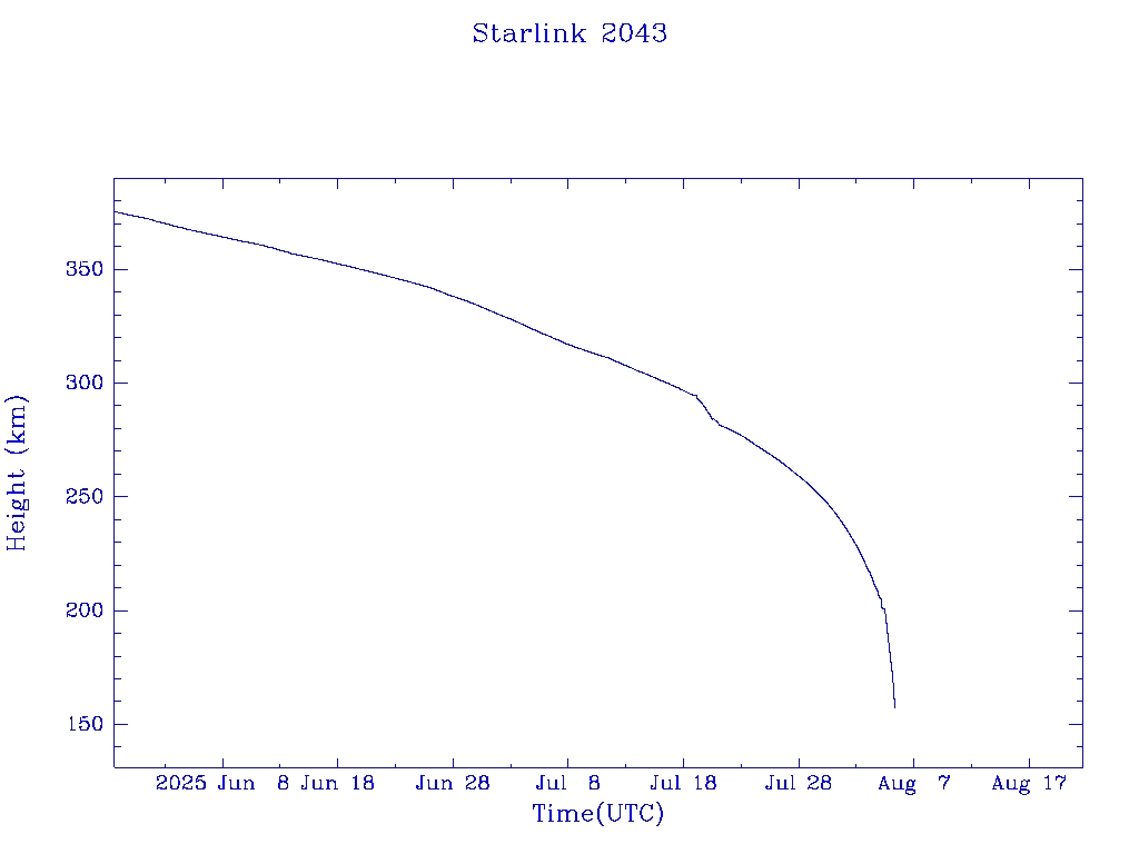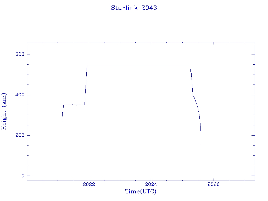 | Starlink 2043 | S47659 | R | 2021 Feb 16 | 2025 May 3? | 2025 Aug 4 |  |  |  |