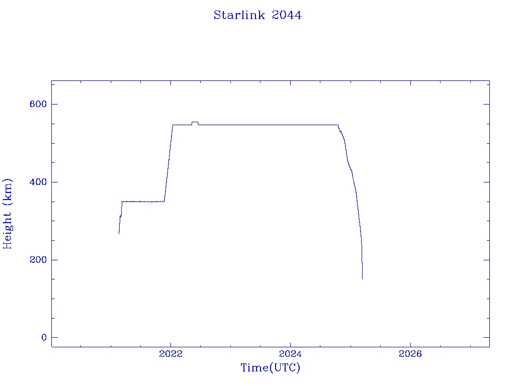| Starlink 2044 | S47660 | R | 2021 Feb 16 | 2025 Feb 23? | 2025 Mar 12 |  |  |  |