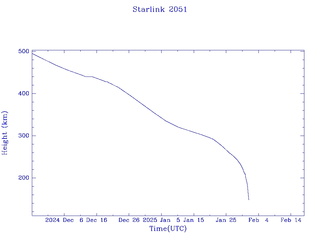 | Starlink 2051 | S47661 | R | 2021 Feb 16 | 2025 Jan 20? | 2025 Feb 1 |  |  |  |