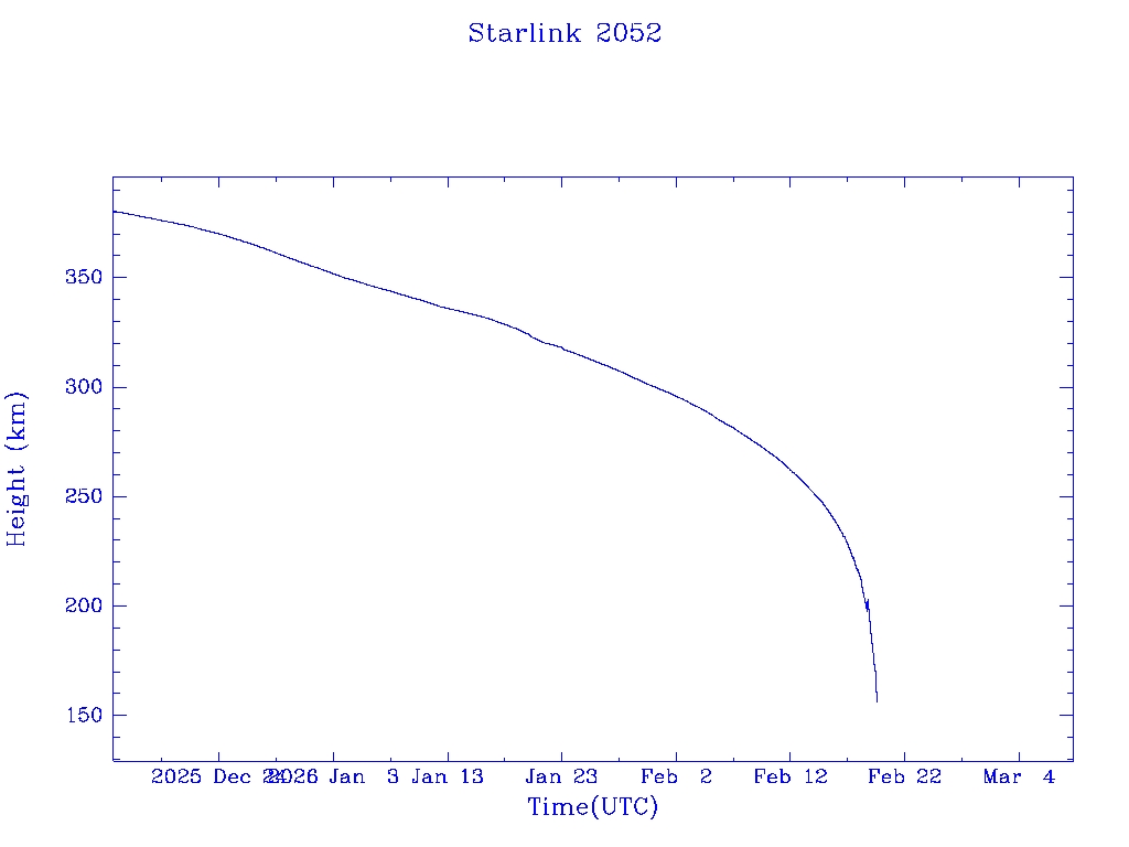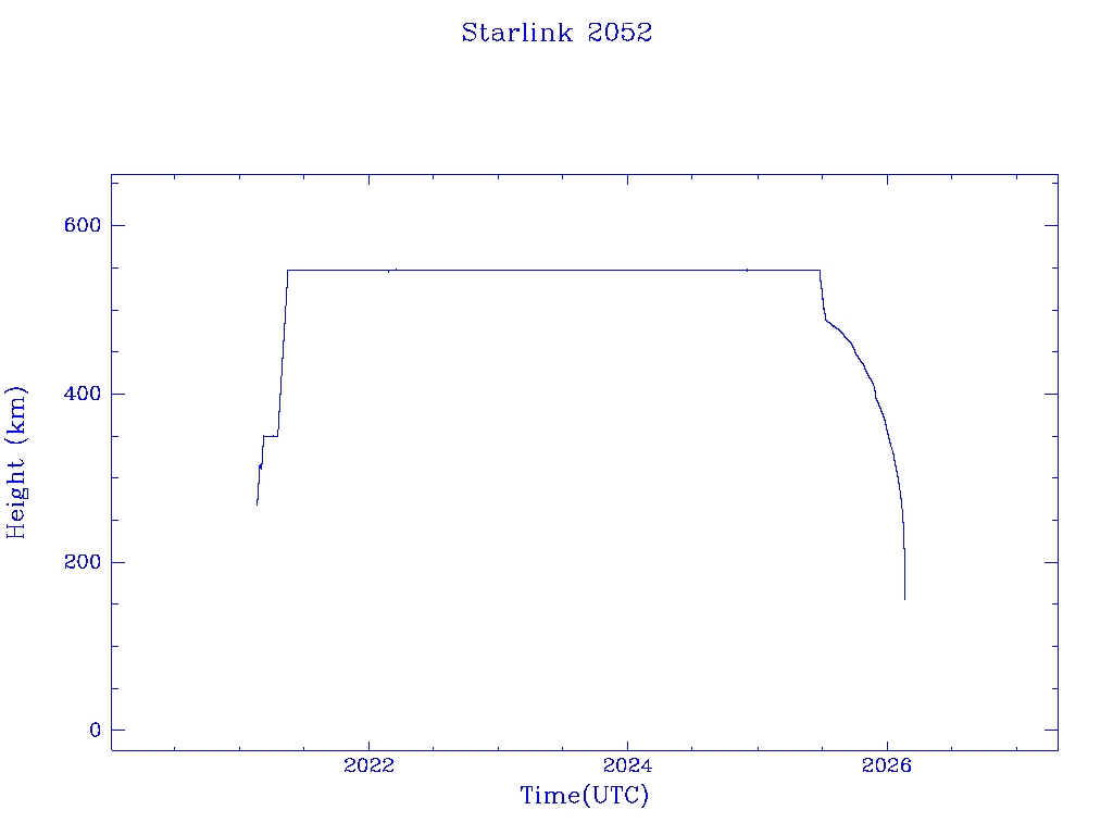 | Starlink 2052 | S47662 | R | 2021 Feb 16 | 2025 Nov 29? | 2026 Feb 19 |  |  |  |