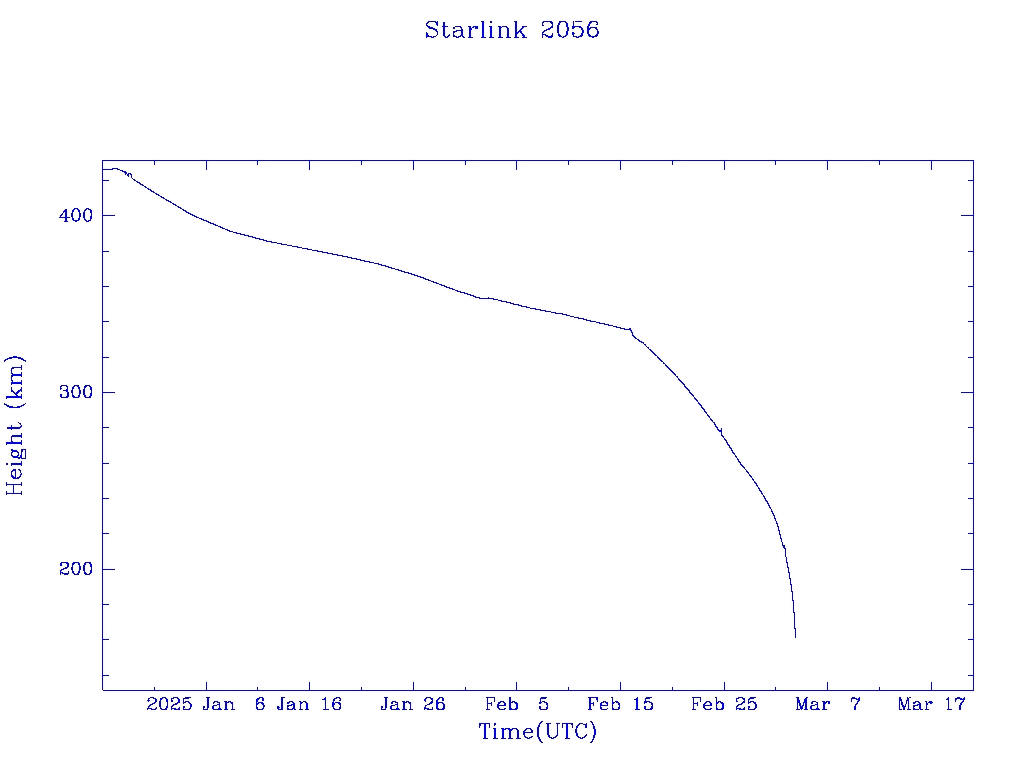 | Starlink 2056 | S47665 | R | 2021 Feb 16 | 2025 Feb 15? | 2025 Mar 4 |  |  |  |