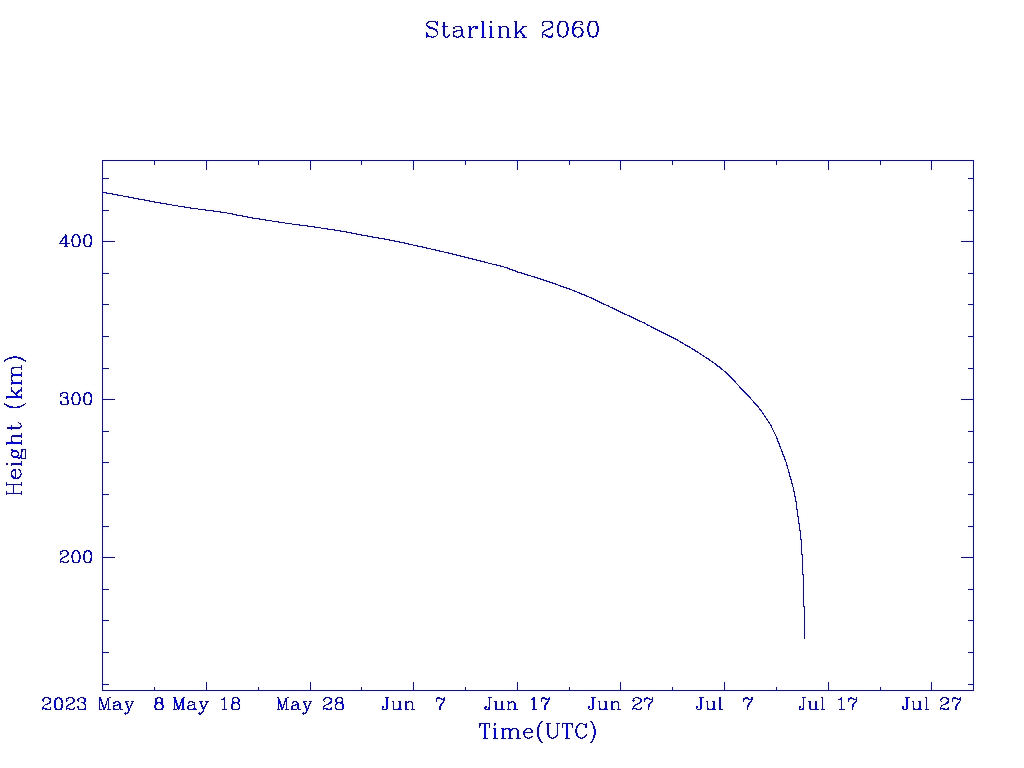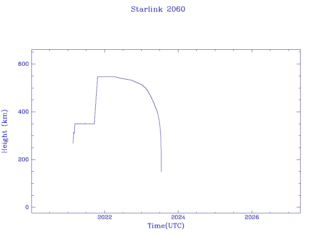 | Starlink 2060 | S47669 | M | 2021 Feb 16 | 2022 Apr 9 | 2023 Jul 14 |  |  |  |