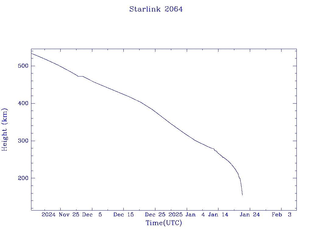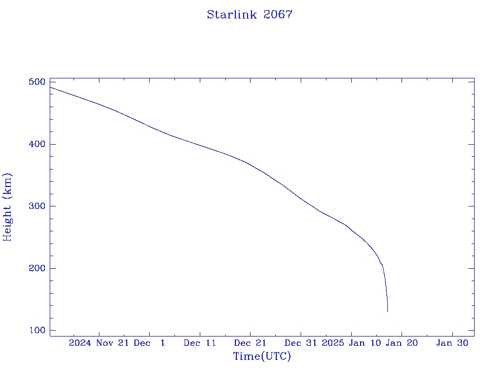 | Starlink 2067 | S47674 | R | 2021 Feb 16 | 2025 Jan 1? | 2025 Jan 17 |  |  |  |