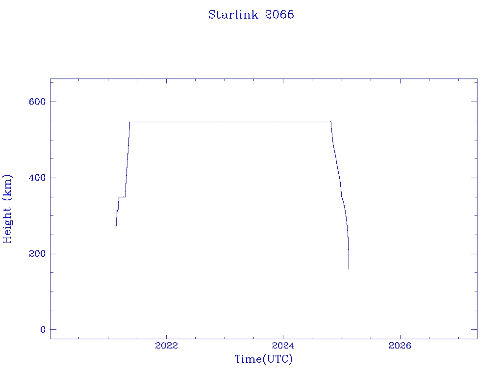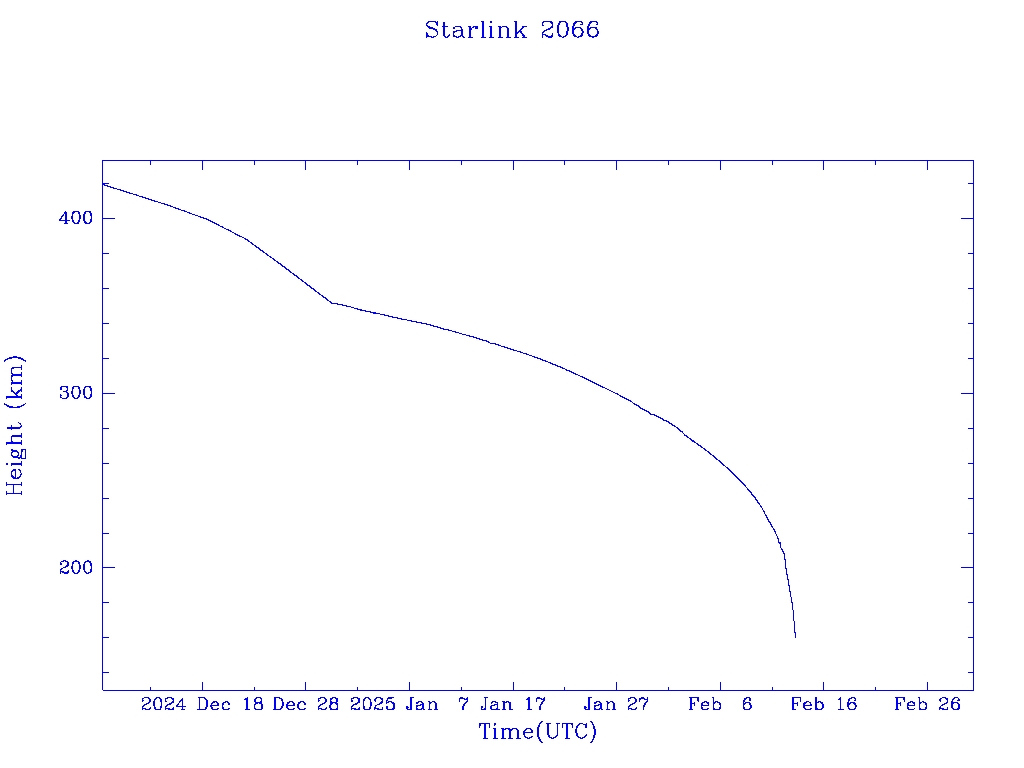 | Starlink 2066 | S47673 | R | 2021 Feb 16 | 2024 Dec 29? | 2025 Feb 13 |  |  |  |