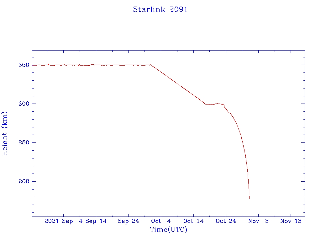 | Starlink 2091 | S47678 | F | 2021 Feb 16 | 2021 Oct 25? | 2021 Oct 31 |  |  |  |