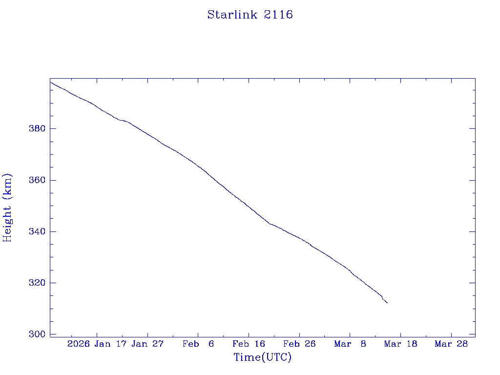 | Starlink 2116 | S47724 | R | 2021 Mar 4 | * | - |  |  |  |