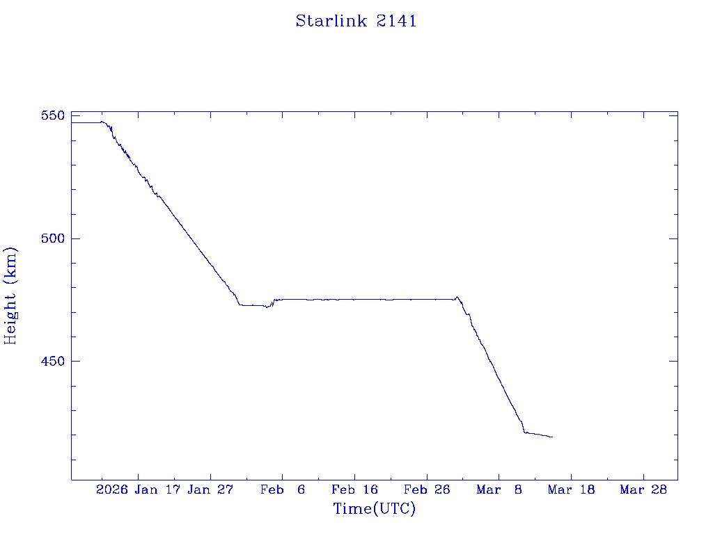 | Starlink 2141 | S47731 | R | 2021 Mar 4 | * | - |  |  |  |