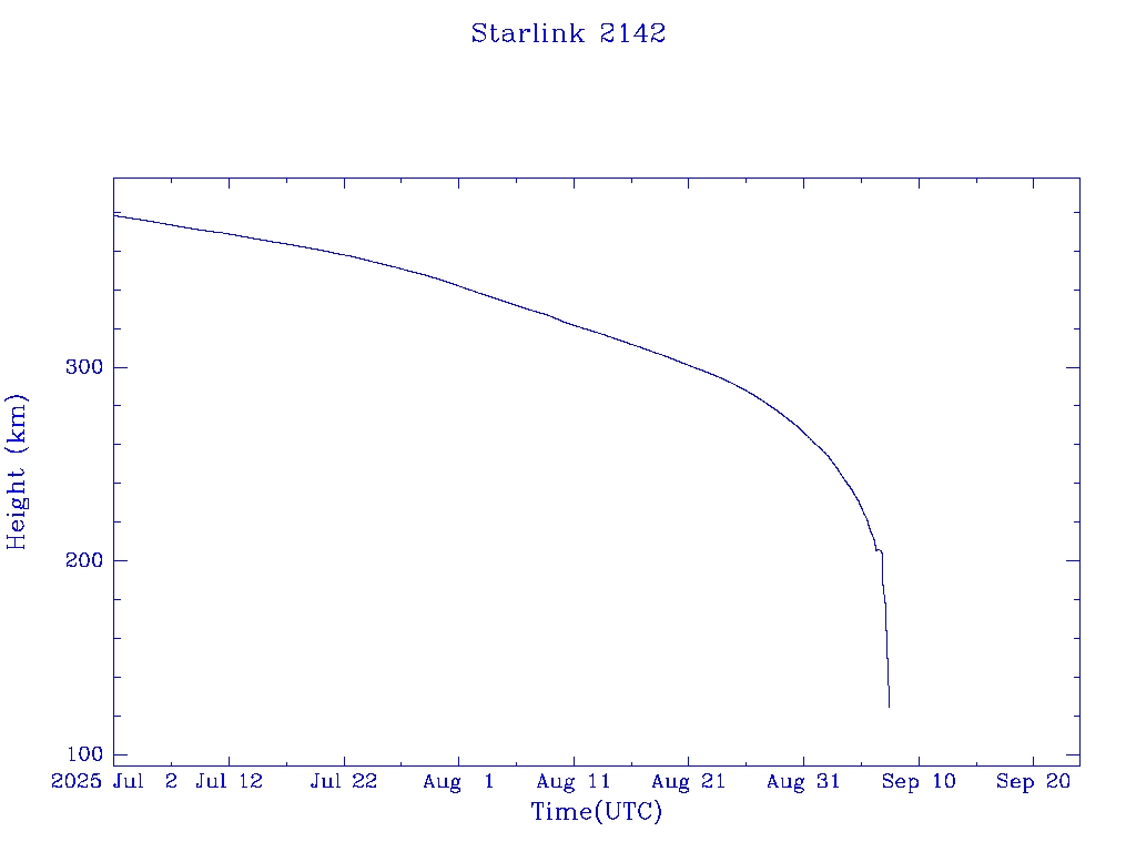 | Starlink 2142 | S47732 | R | 2021 Mar 4 | 2025 Jun 22? | 2025 Sep 7 |  |  |  |