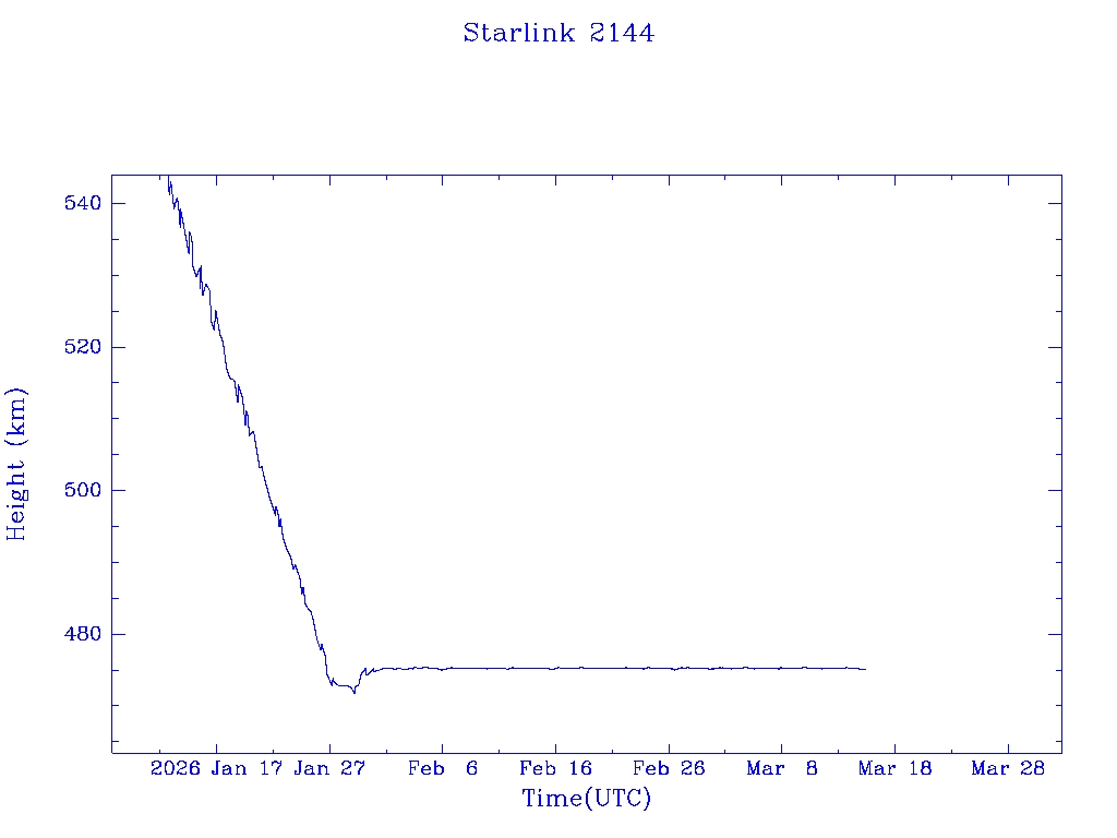 | Starlink 2144 | S47734 | O | 2021 Mar 4 | * | - |  |  |  |