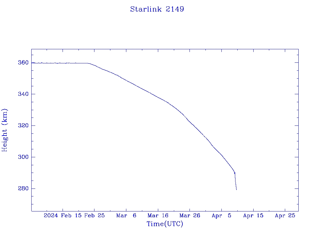 | Starlink 2149 | S47738 | R | 2021 Mar 4 | 2024 Feb 23? | 2024 Apr 12 |  |  |  |