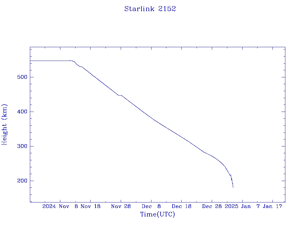 | Starlink 2152 | S47740 | R | 2021 Mar 4 | 2024 Dec 25? | 2025 Jan 4 |  |  |  |
