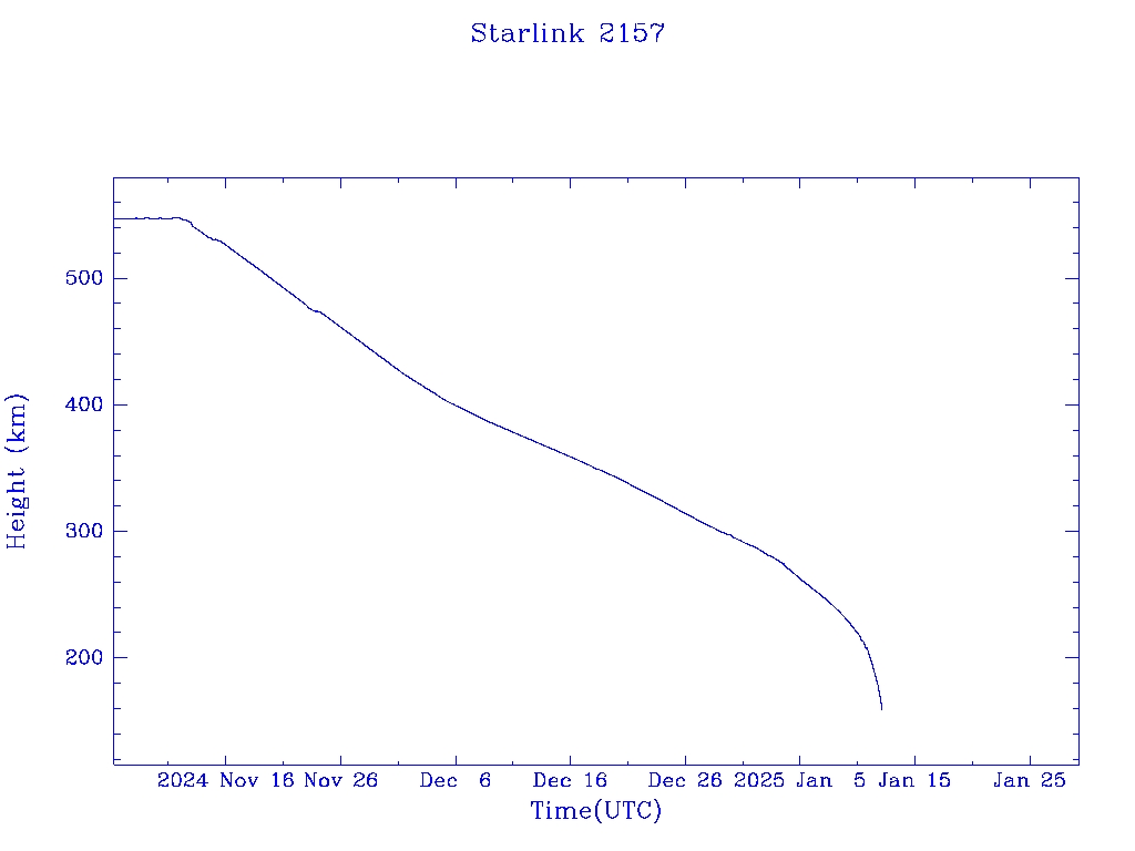 | Starlink 2157 | S47743 | R | 2021 Mar 4 | 2025 Jan 3? | 2025 Jan 12 |  |  |  |