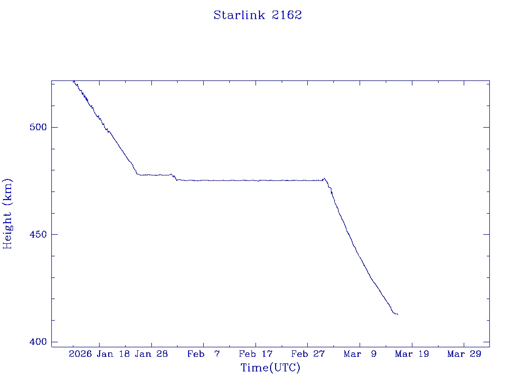 | Starlink 2162 | S47748 | R | 2021 Mar 4 | * | - |  |  |  |