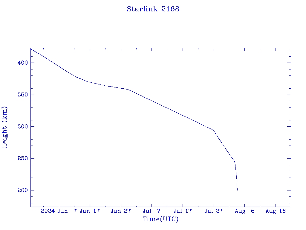 | Starlink 2168 | S47751 | R | 2021 Mar 4 | 2024 Mar 10? | 2024 Aug 3 |  |  |  |