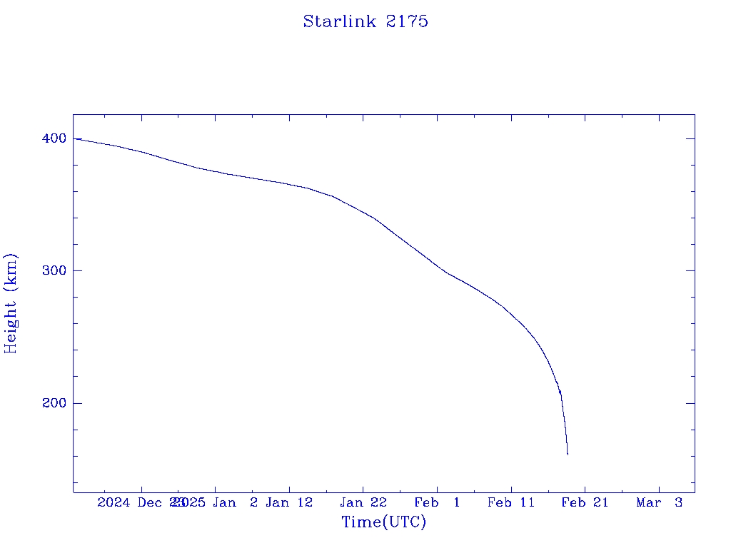 | Starlink 2175 | S47757 | R | 2021 Mar 4 | 2025 Feb 2? | 2025 Feb 18 |  |  |  |