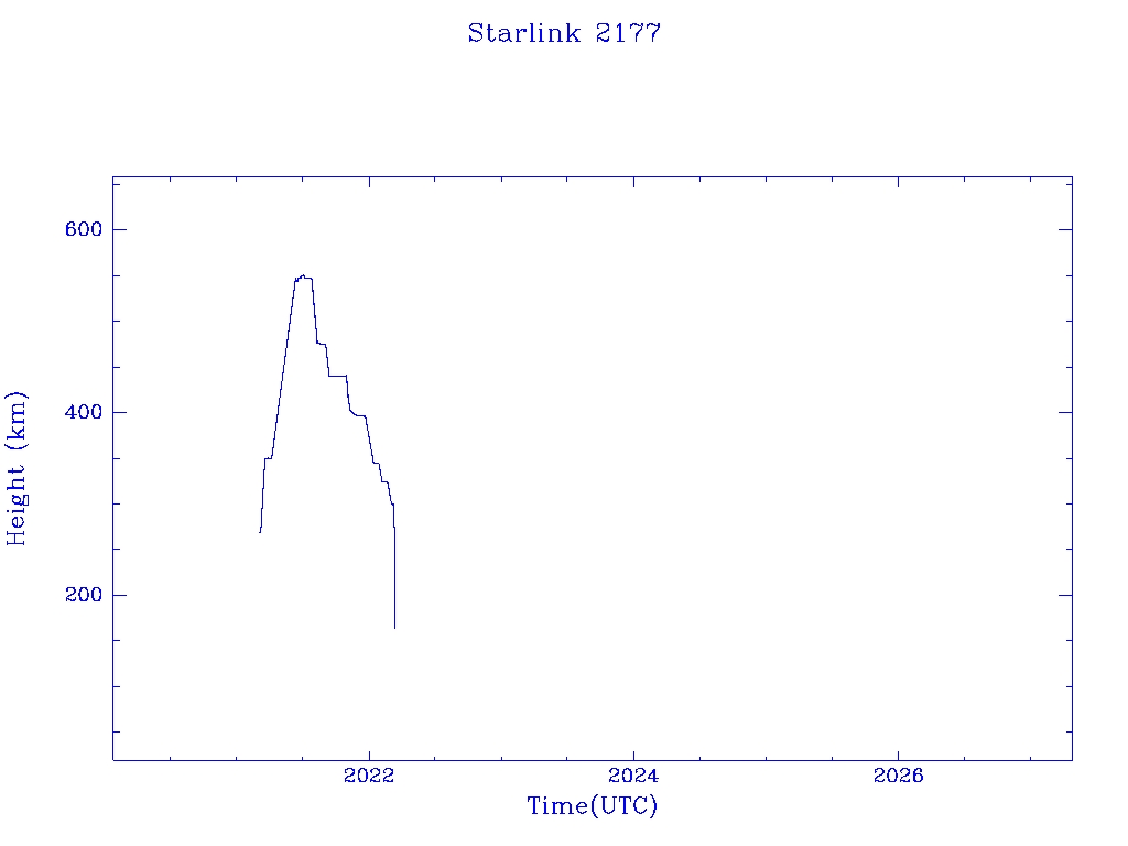 | Starlink 2177 | S47759 | R | 2021 Mar 4 | 2022 Mar 8 | 2022 Mar 13 |  |  |  |