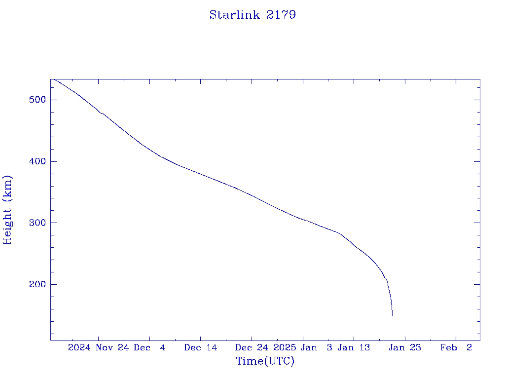 | Starlink 2179 | S47761 | R | 2021 Mar 4 | 2025 Jan 10? | 2025 Jan 20 |  |  |  |