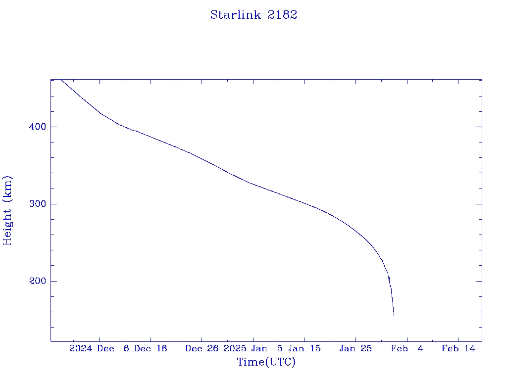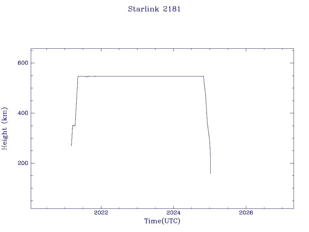 | Starlink 2182 | S47764 | R | 2021 Mar 4 | 2025 Jan 7? | 2025 Feb 1 |  |  |  |