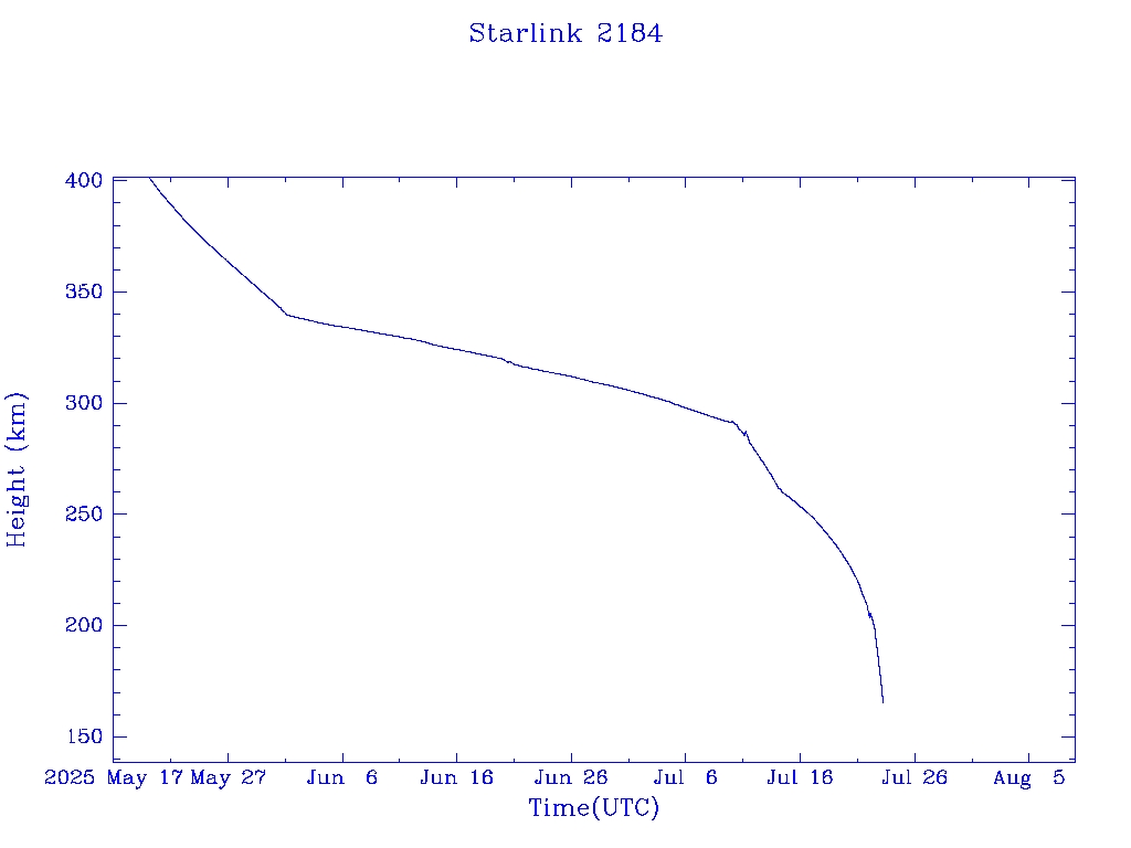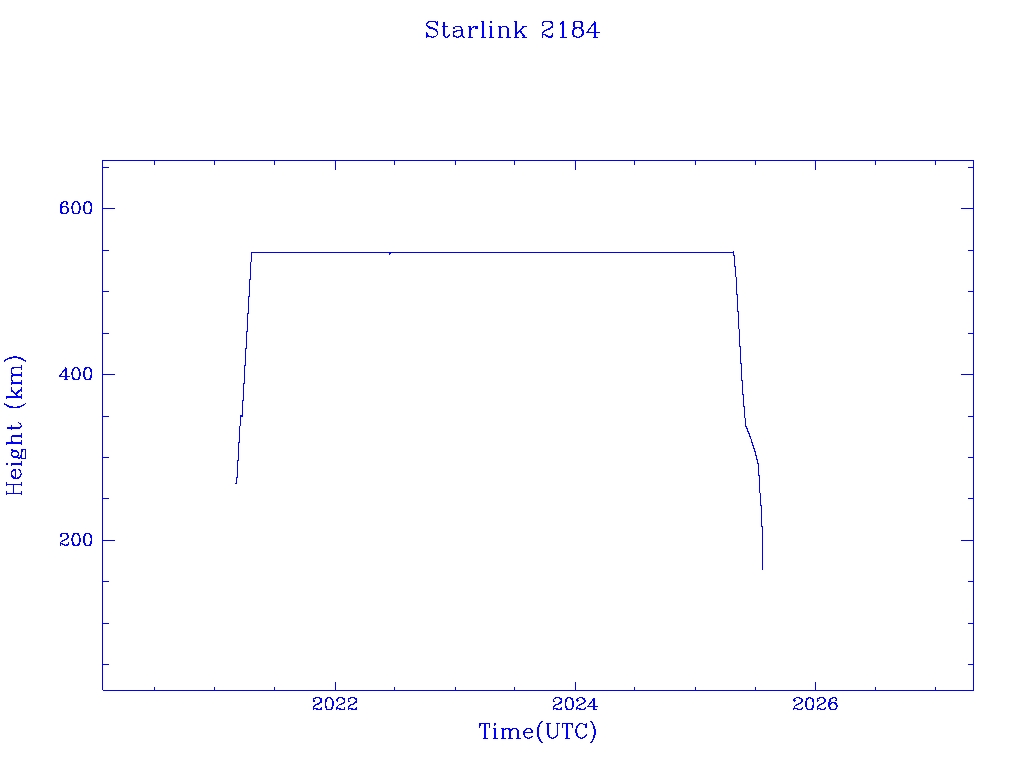 | Starlink 2184 | S47766 | R | 2021 Mar 4 | 2025 Jul 14? | 2025 Jul 23 |  |  |  |