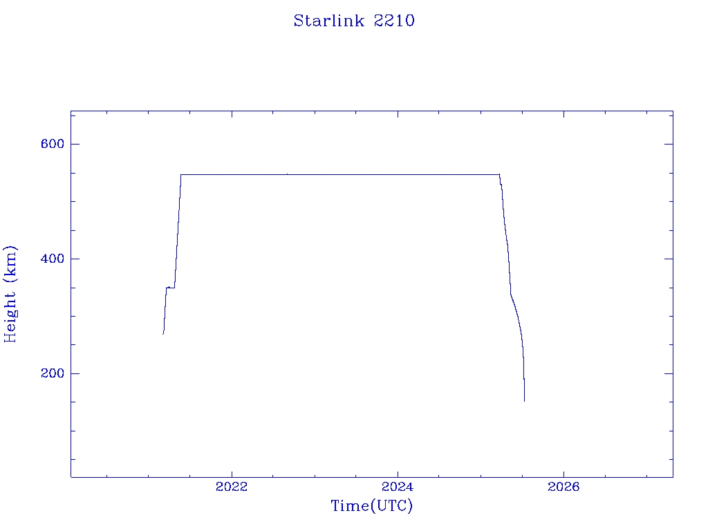 | Starlink 2210 | S47777 | R | 2021 Mar 4 | 2025 May 12? | 2025 Jul 10 |  |  |  |
