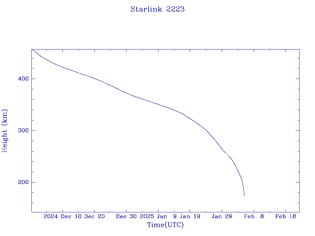 | Starlink 2223 | S47781 | R | 2021 Mar 4 | 2025 Jan 16? | 2025 Feb 5 |  |  |  |