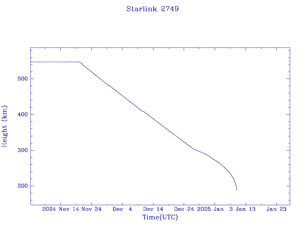 | Starlink 2749 | S48429 | R | 2021 May 9 | 2024 Dec 26? | 2025 Jan 10 |  |  |  |