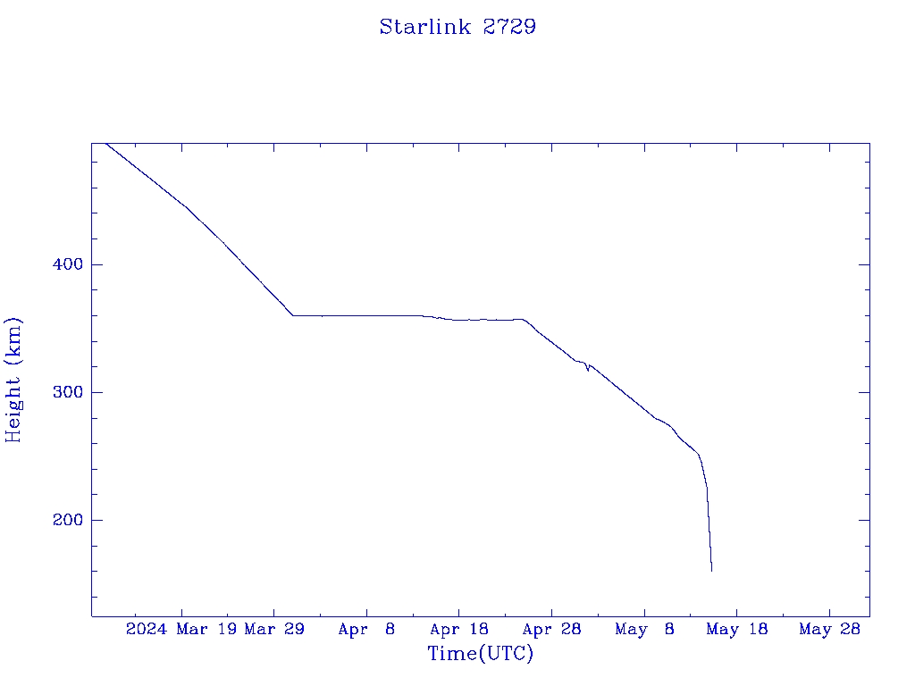 | Starlink 2729 | S48430 | R | 2021 May 9 | 2024 May 12 | 2024 May 15 |  |  |  |