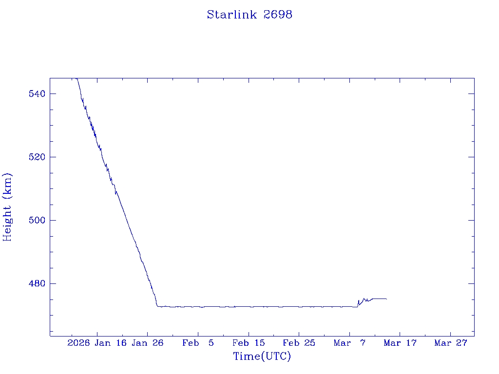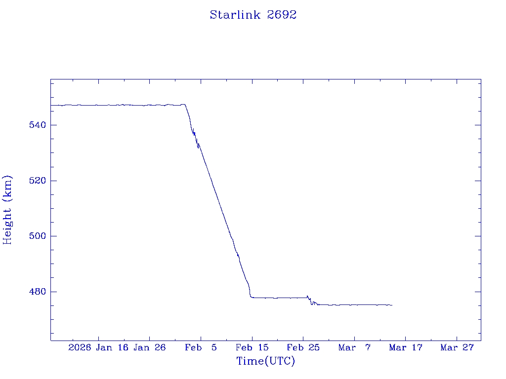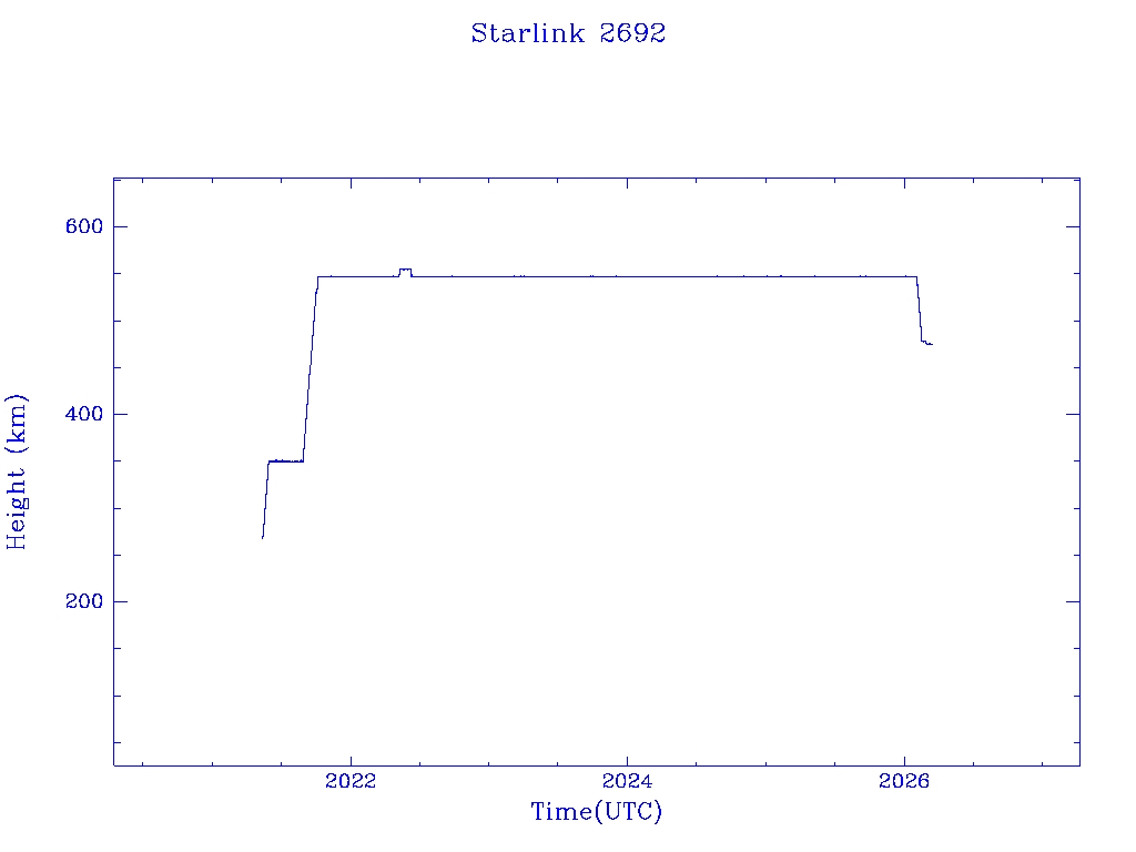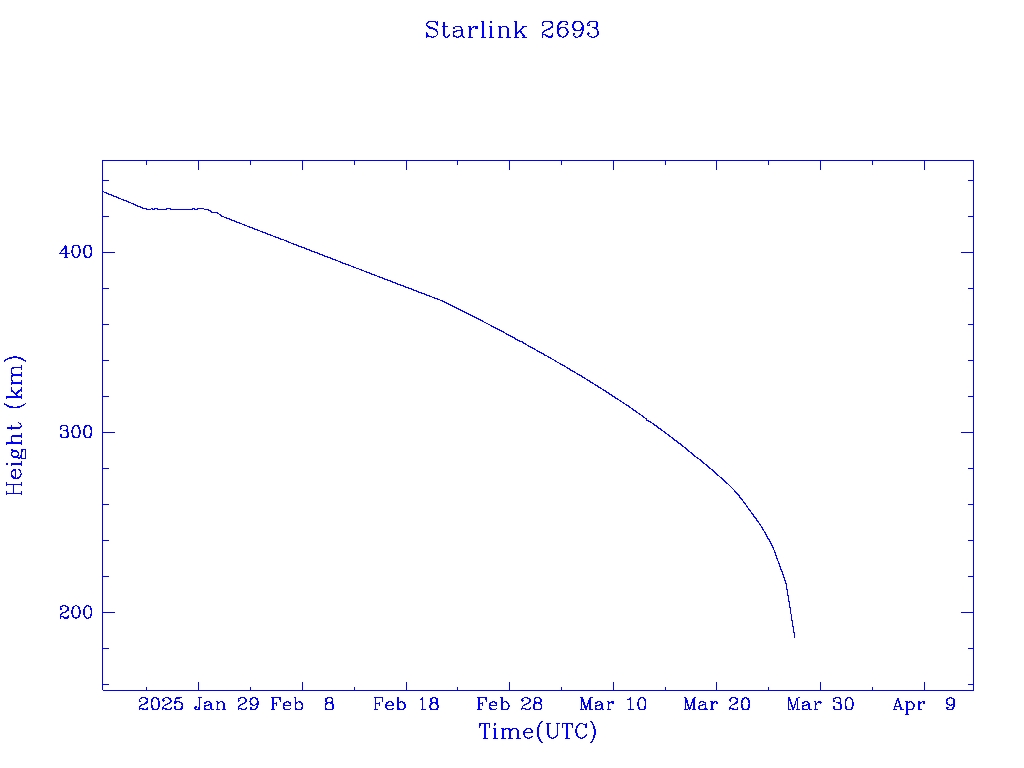 | Starlink 2693 | S48461 | R | 2021 May 9 | 2025 Jan 30? | 2025 Mar 27 |  |  |  |
