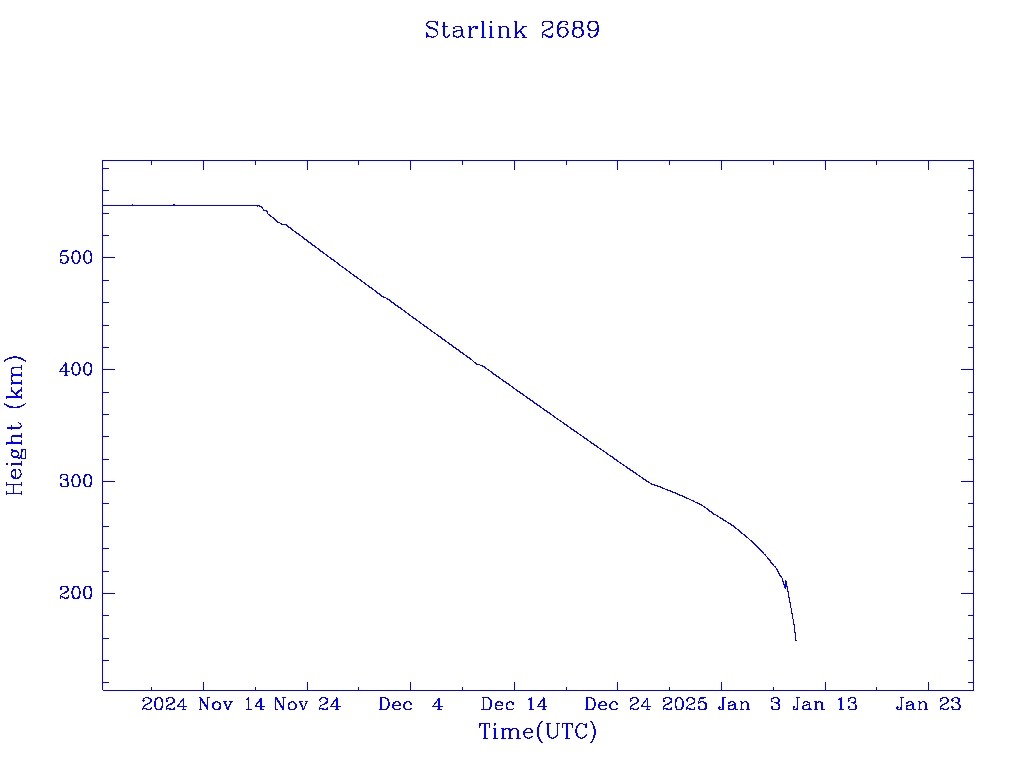 | Starlink 2689 | S48463 | R | 2021 May 9 | 2024 Dec 28? | 2025 Jan 10 |  |  |  |