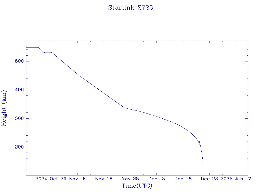| Starlink 2723 | S48476 | R | 2021 May 9 | 2024 Nov 25? | 2024 Dec 25 |  |  |  |