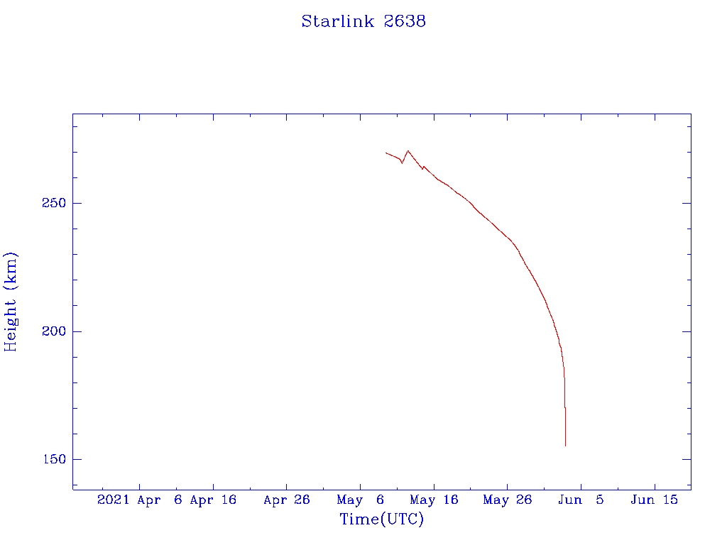 | Starlink 2638 | S48477 | F | 2021 May 9 | 2021 May 14 | 2021 Jun 2 |  |  |  |