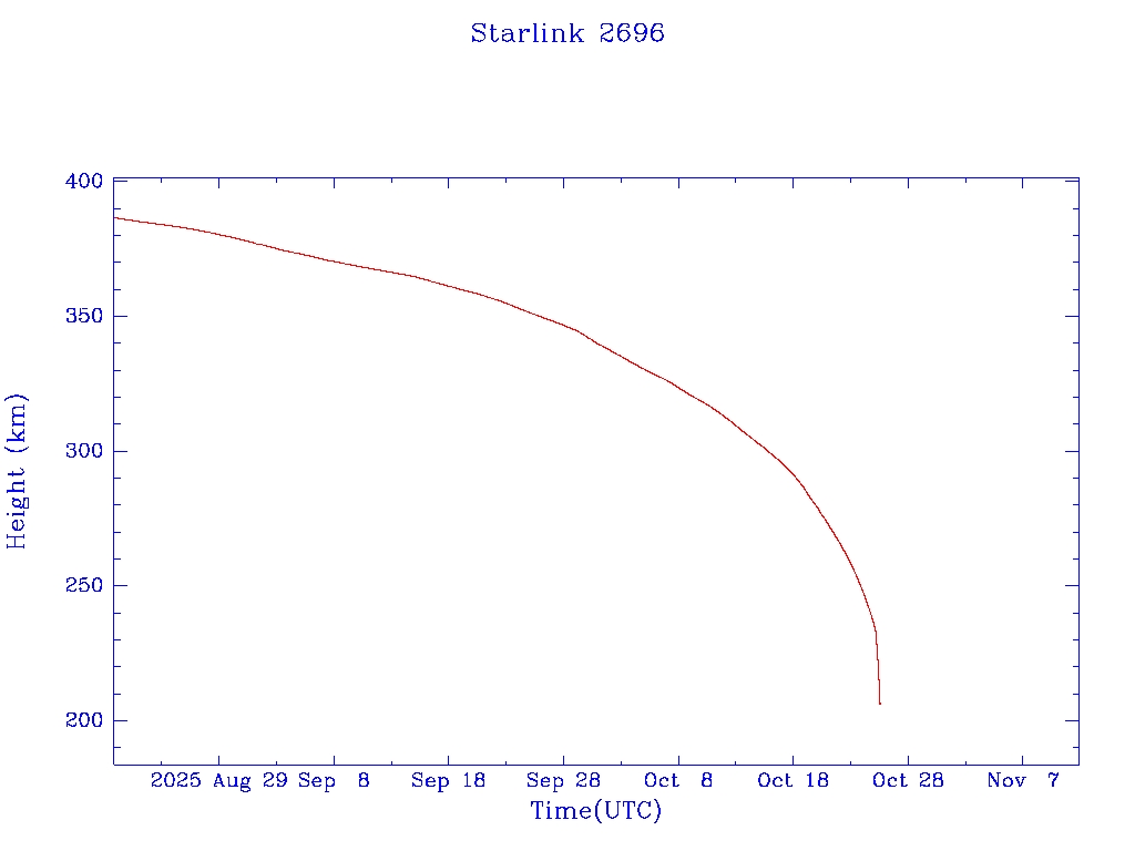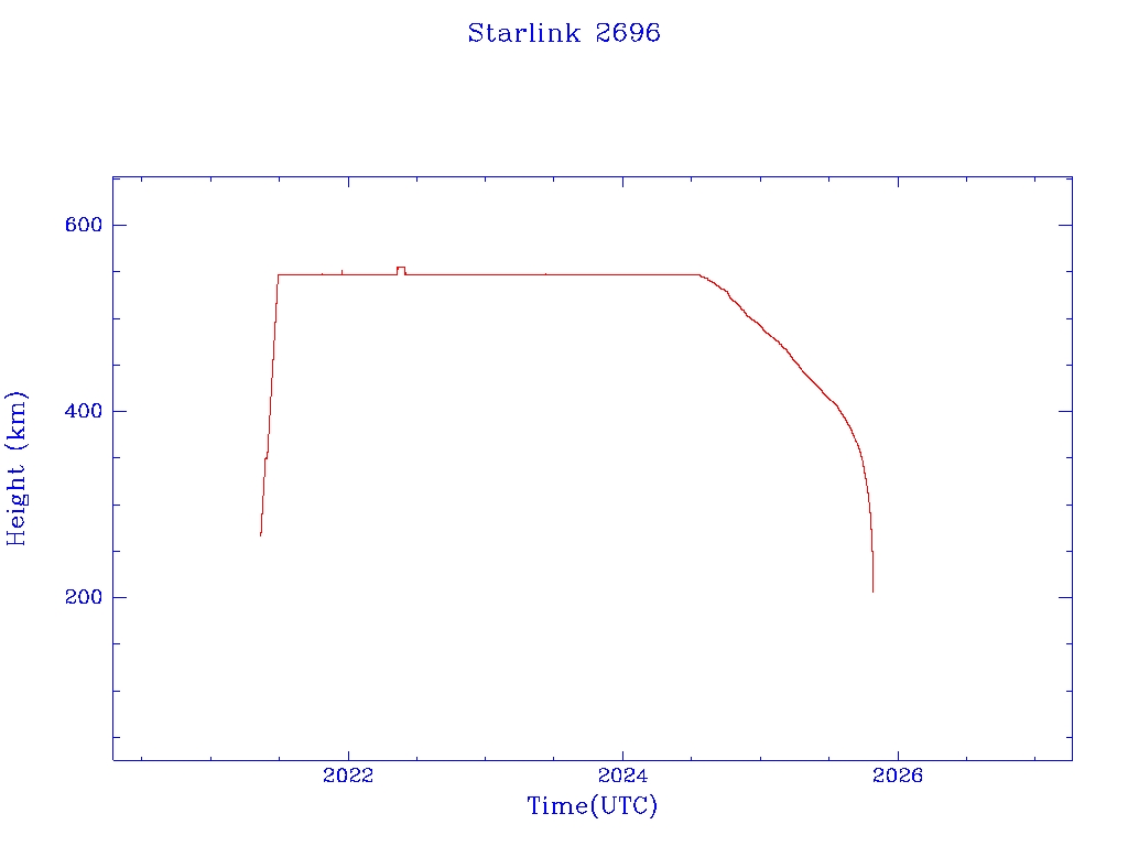 | Starlink 2696 | S48484 | M | 2021 May 9 | 2024 Jul 19? | 2025 Oct 25 |  |  |  |