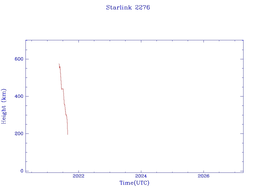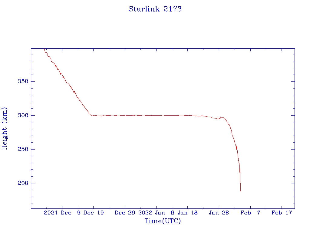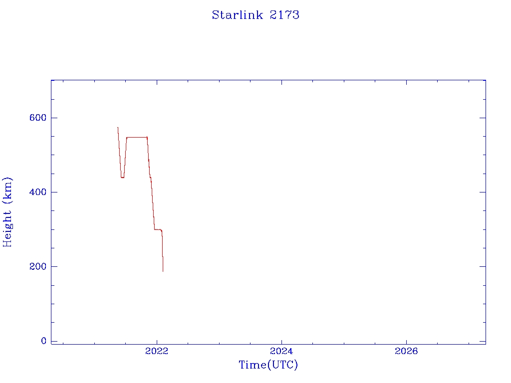 | Starlink 2173 | S48560 | R | 2021 May 15 | 2022 Jan 28 | 2022 Feb 4 |  |  |  |