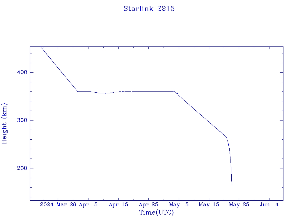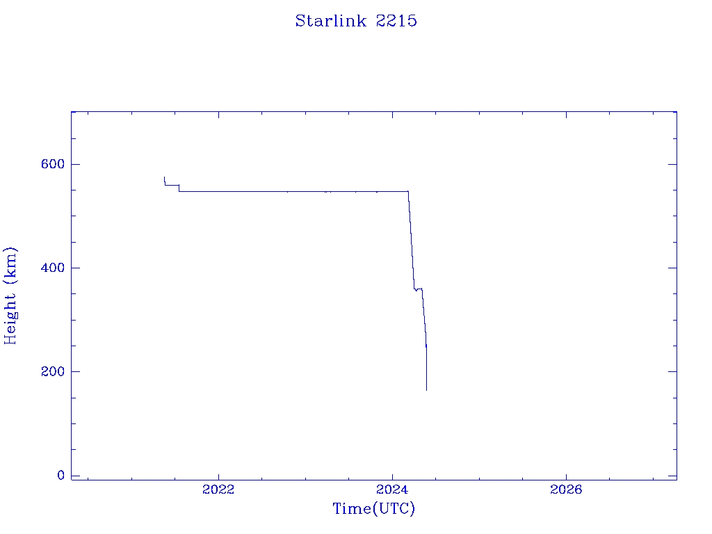 | Starlink 2215 | S48567 | R | 2021 May 15 | 2024 May 21? | 2024 May 22 |  |  |  |