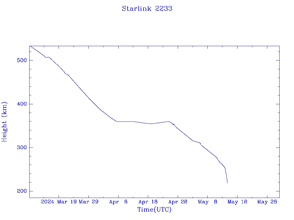 | Starlink 2233 | S48579 | R | 2021 May 15 | 2024 May 13 | 2024 May 15 |  |  |  |