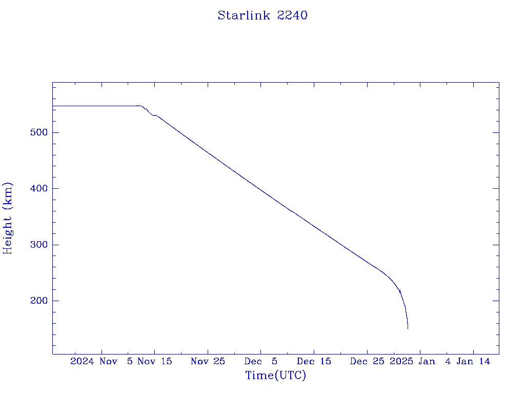 | Starlink 2240 | S48585 | R | 2021 May 15 | 2024 Dec 23? | 2025 Jan 1 |  |  |  |