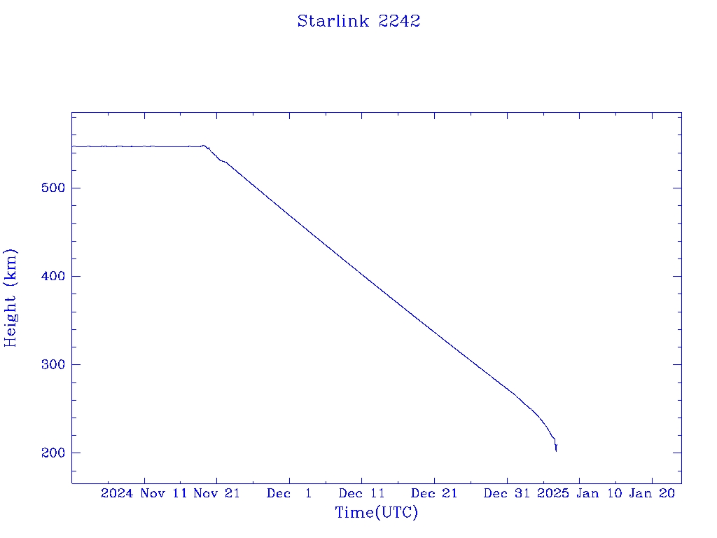 | Starlink 2242 | S48587 | R | 2021 May 15 | 2025 Jan 3? | 2025 Jan 7 |  |  |  |