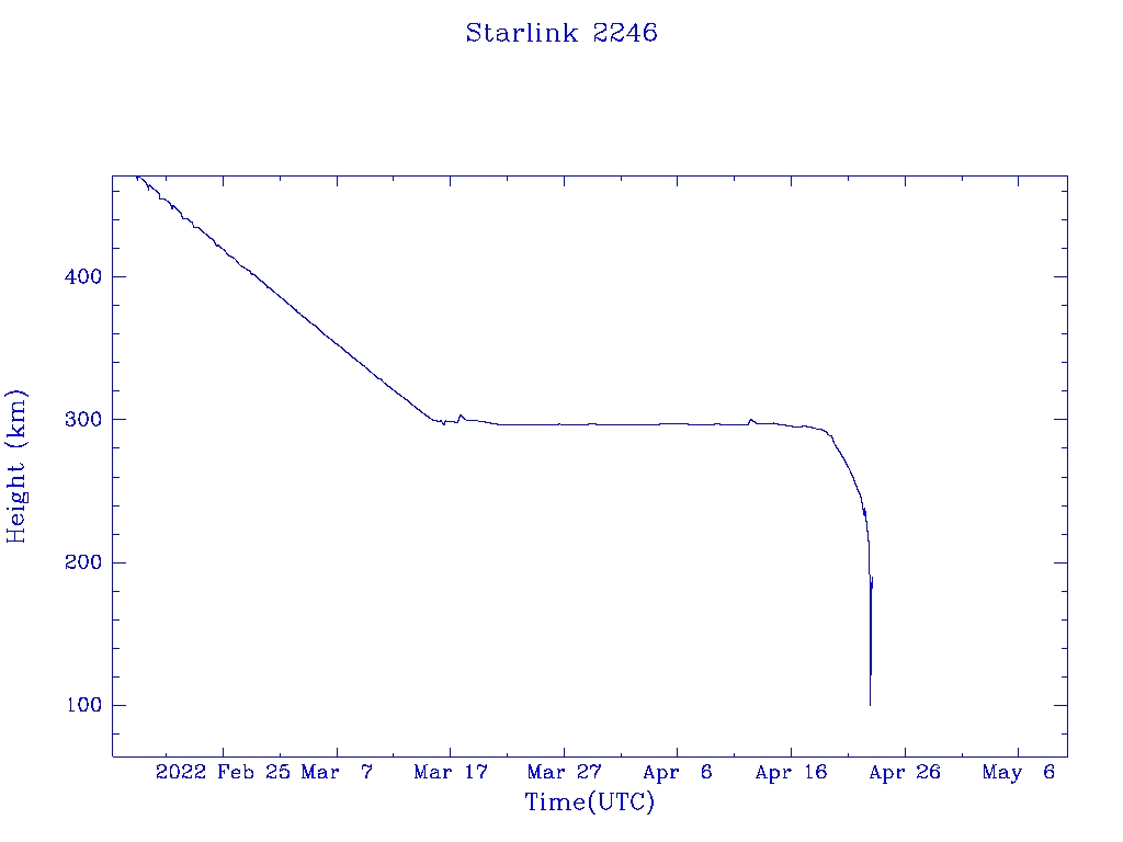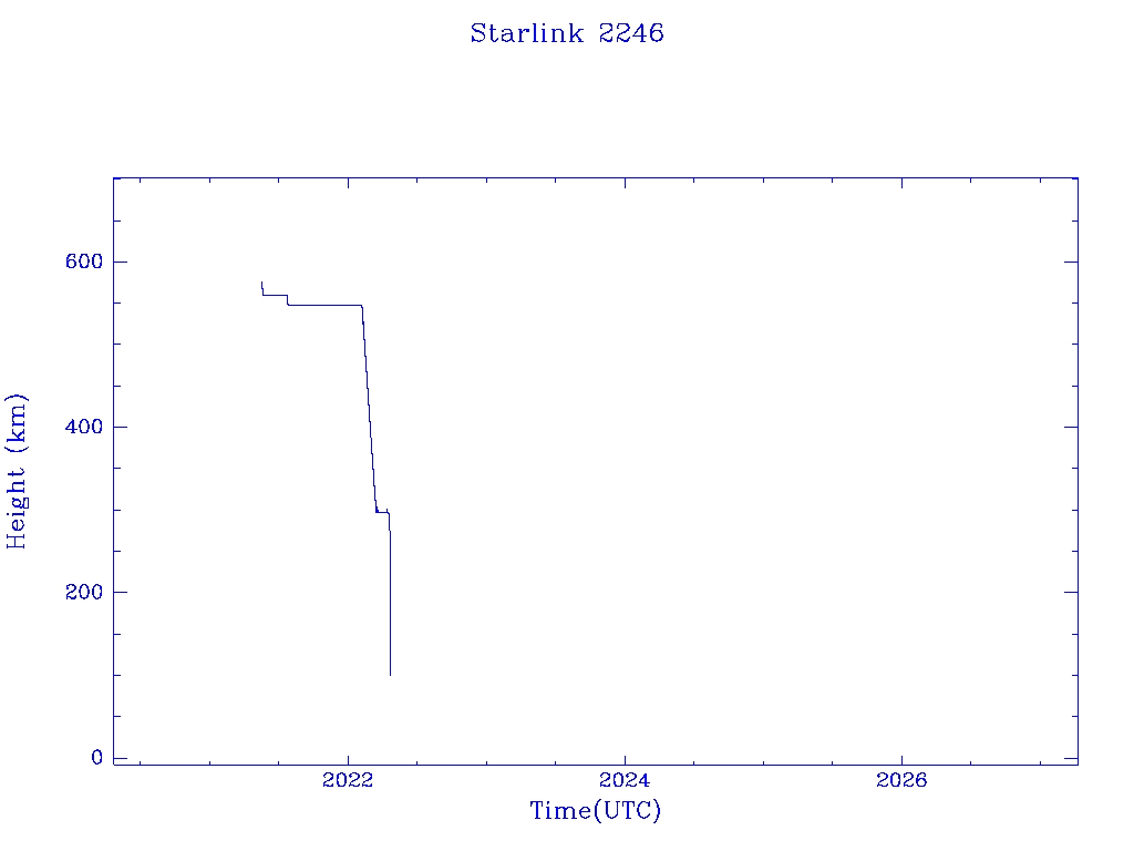 | Starlink 2246 | S48590 | R | 2021 May 15 | 2022 Apr 19 | 2022 Apr 23 |  |  |  |