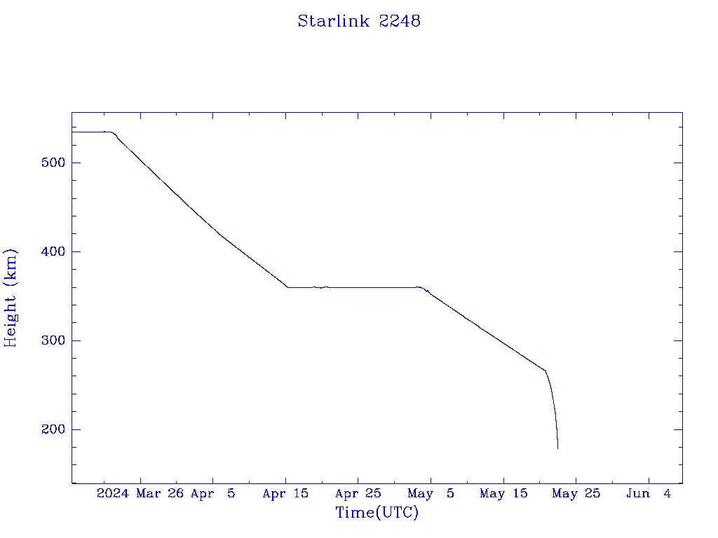 | Starlink 2248 | S48591 | R | 2021 May 15 | 2024 May 21 | 2024 May 22 |  |  |  |