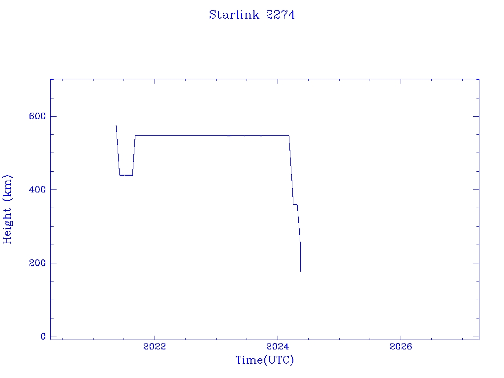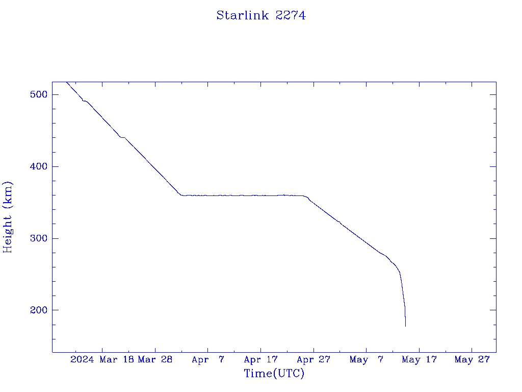 | Starlink 2274 | S48599 | R | 2021 May 15 | 2024 May 11? | 2024 May 14 |  |  |  |