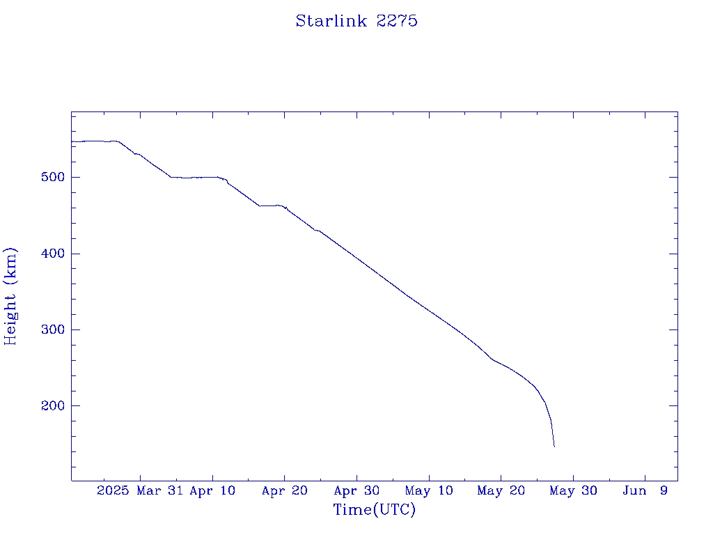 | Starlink 2275 | S48600 | R | 2021 May 15 | 2025 May 18? | 2025 May 27 |  |  |  |