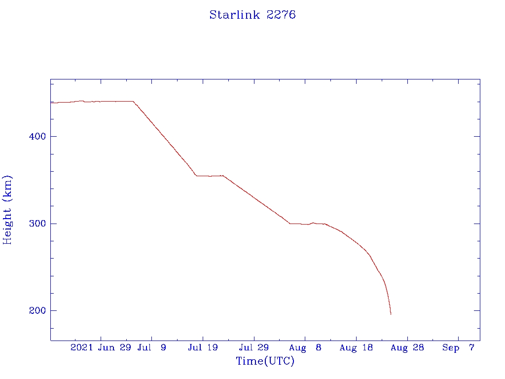 | Starlink 2276 | S48601 | F | 2021 May 15 | 2021 Aug 12? | 2021 Aug 25 |  |  |  |