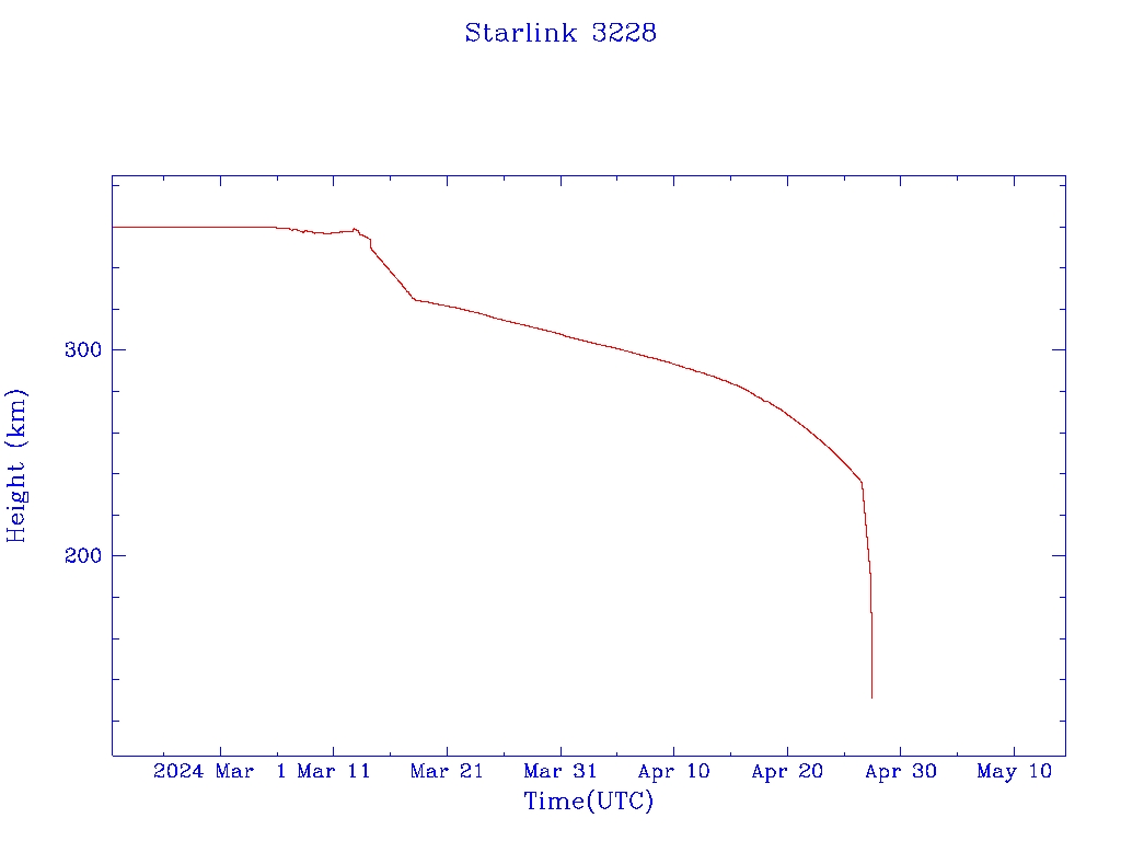 | Starlink 3228 | S49731 | R | 2021 Dec 2 | 2024 Mar 18 | 2024 Apr 27 |  |  |  |