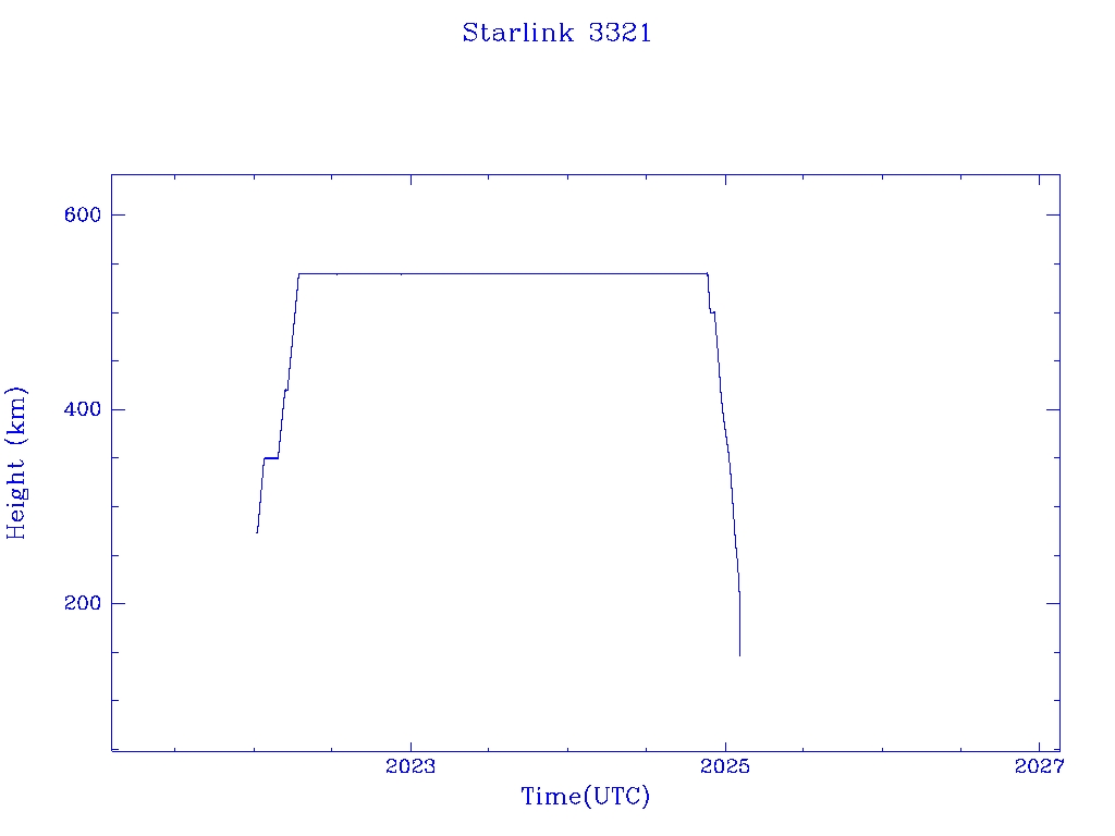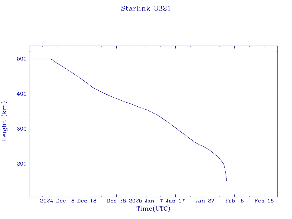 | Starlink 3321 | S50803 | R | 2022 Jan 6 | 2025 Jan 26? | 2025 Feb 3 |  |  |  |