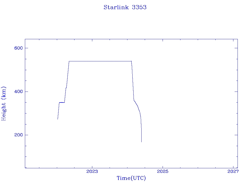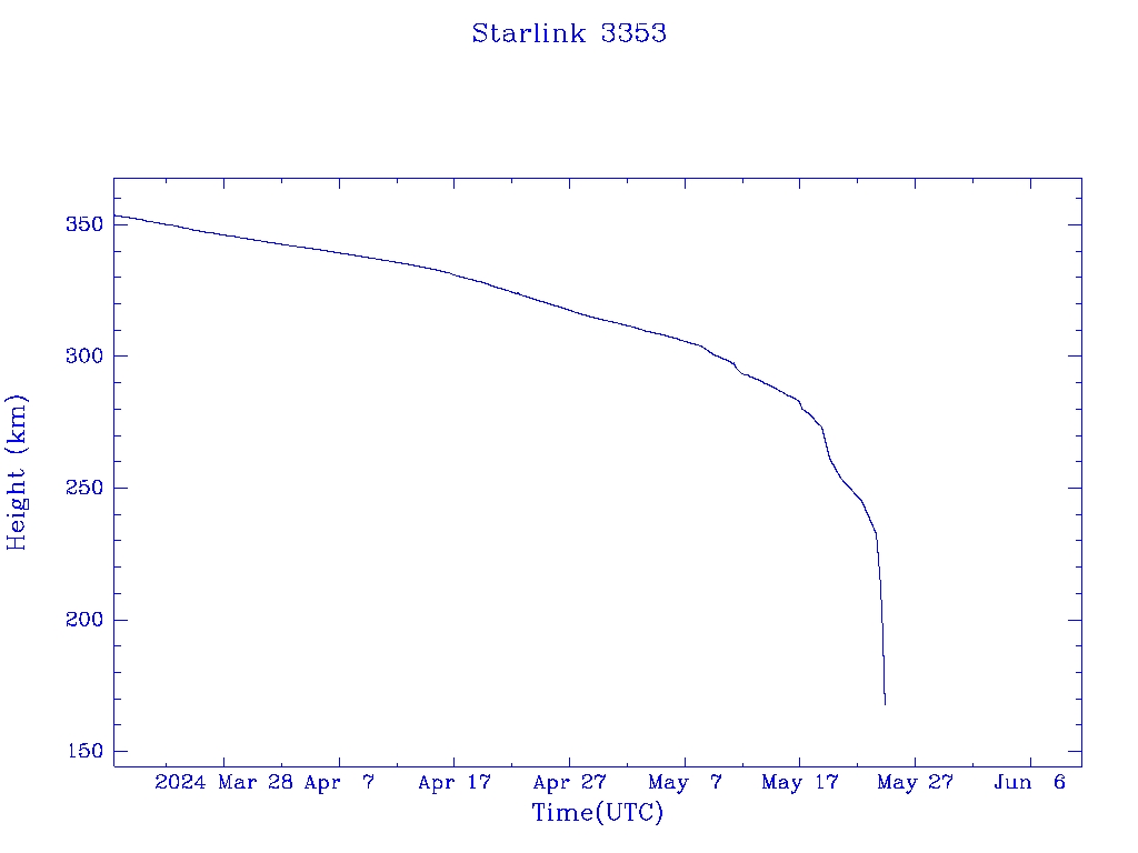 | Starlink 3353 | S50807 | R | 2022 Jan 6 | 2024 May 6? | 2024 May 24 |  |  |  |