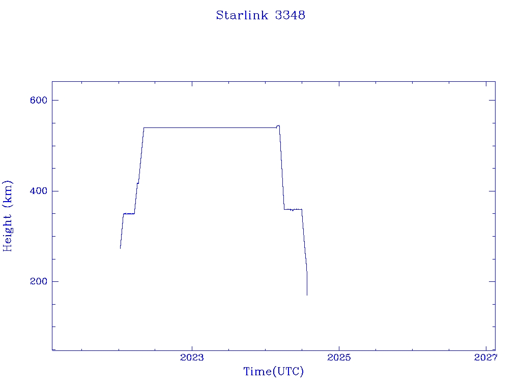 | Starlink 3348 | S50810 | R | 2022 Jan 6 | 2024 Jul 24? | 2024 Jul 25 |  |  |  |