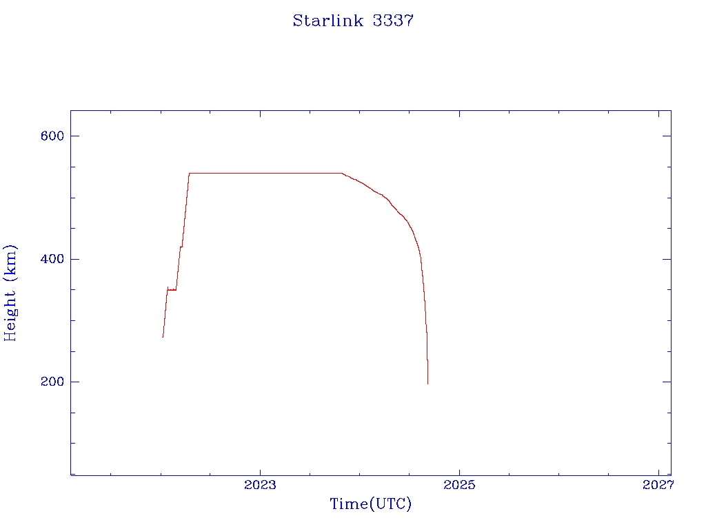 | Starlink 3337 | S50826 | M | 2022 Jan 6 | 2023 Nov 7 | 2024 Sep 5 |  |  |  |